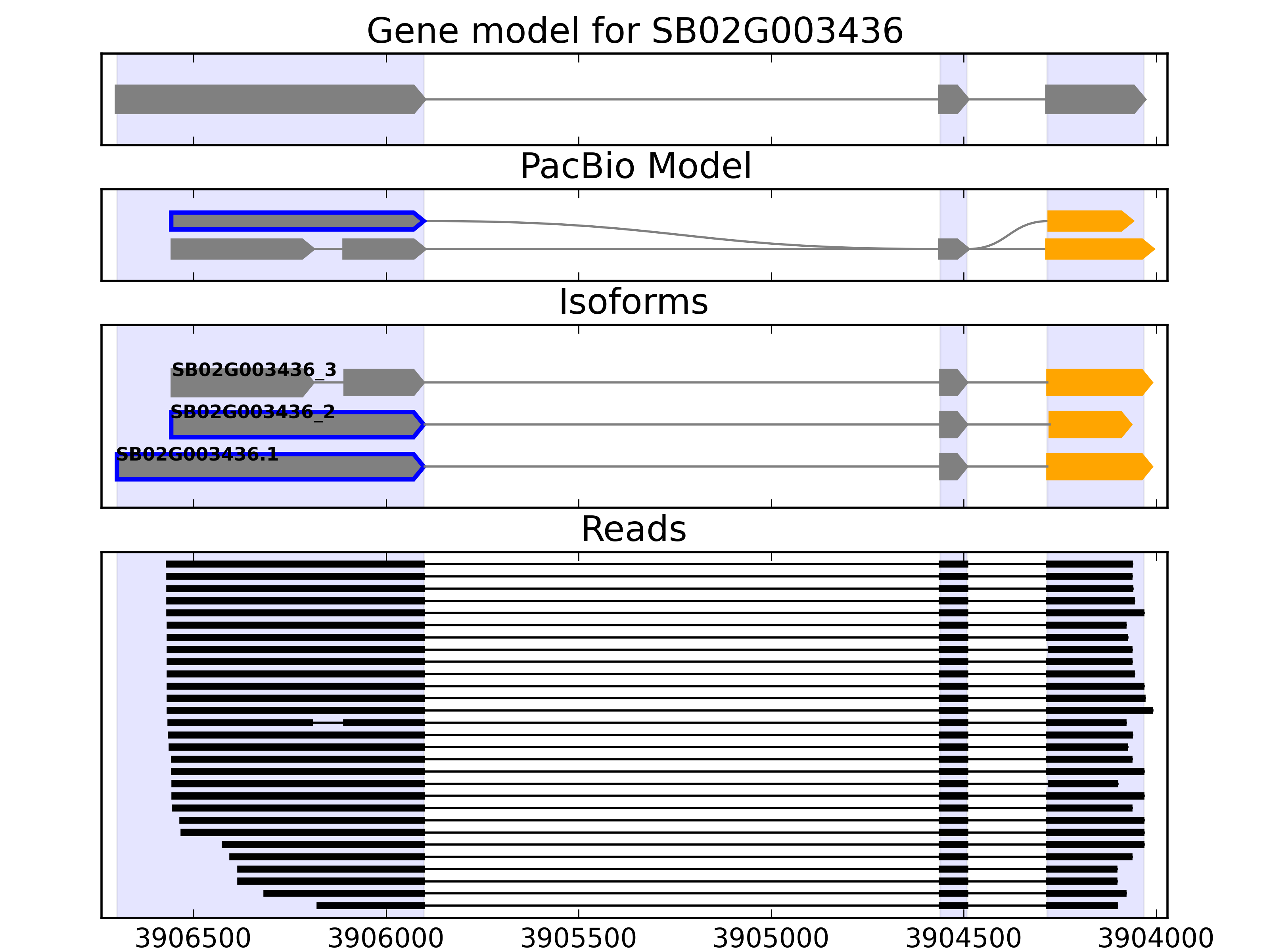 Transcripts and poly(A) sites detected using IsoSeq protocol from sorghum are presented for 14,450 genes expressed in seedlings.
